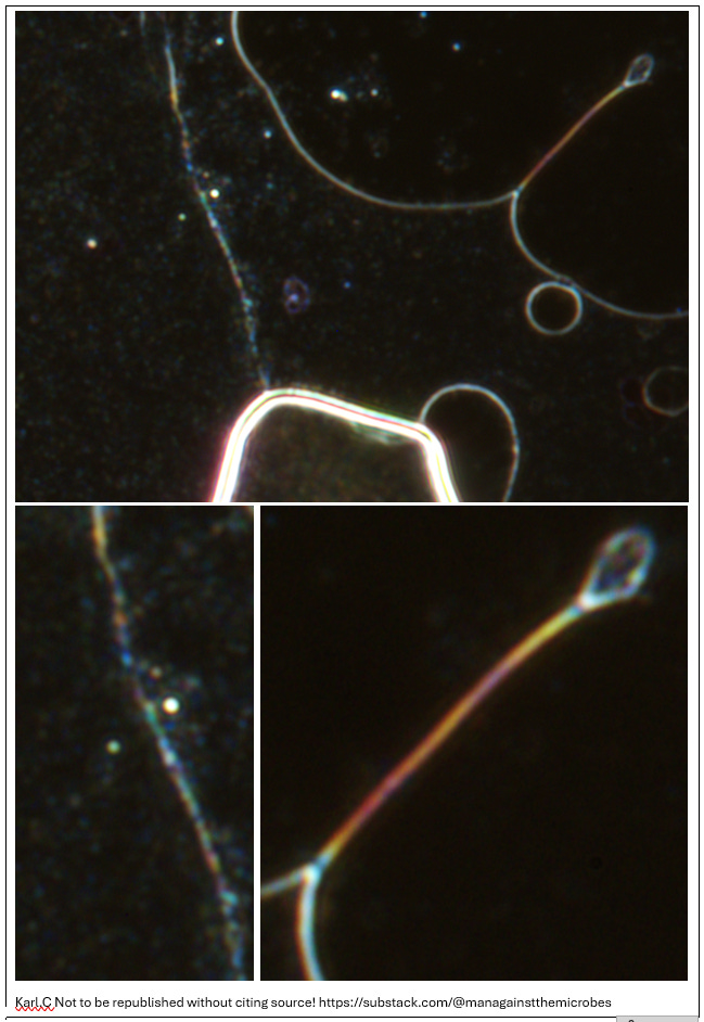 Also, I noticed you mention that filaments are often found near vesicles, and I agree that some vesicles might be capable of producing structured materials. I’ve actually observed this myself in some samples—at least in cat blood samples. However, I’m not sure all filaments necessarily originate from vesicles.